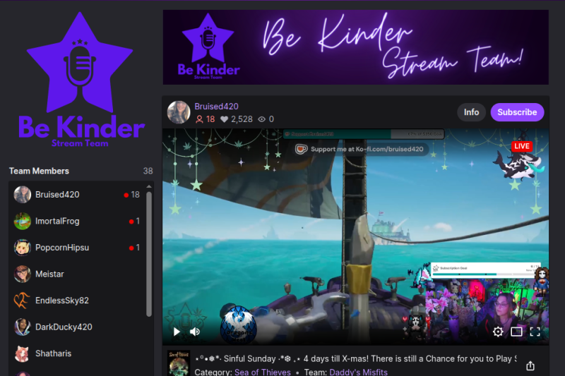 I am a part of the Be Kinder Stream Team. Our team is a collective of creators spreading kindness, positivity, and good vibes on Twitch.